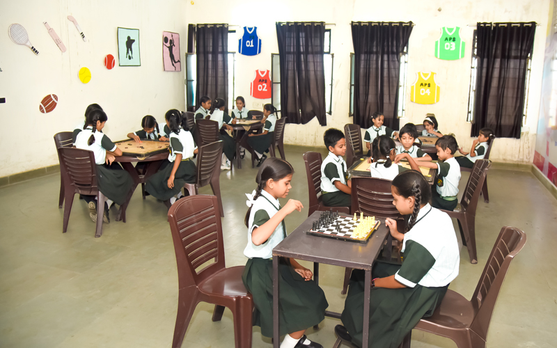 Indoor and outdoor sports facilities, such as table tennis, volleyball, badminton, taekwondo, judo, skating, chess, and carrom.